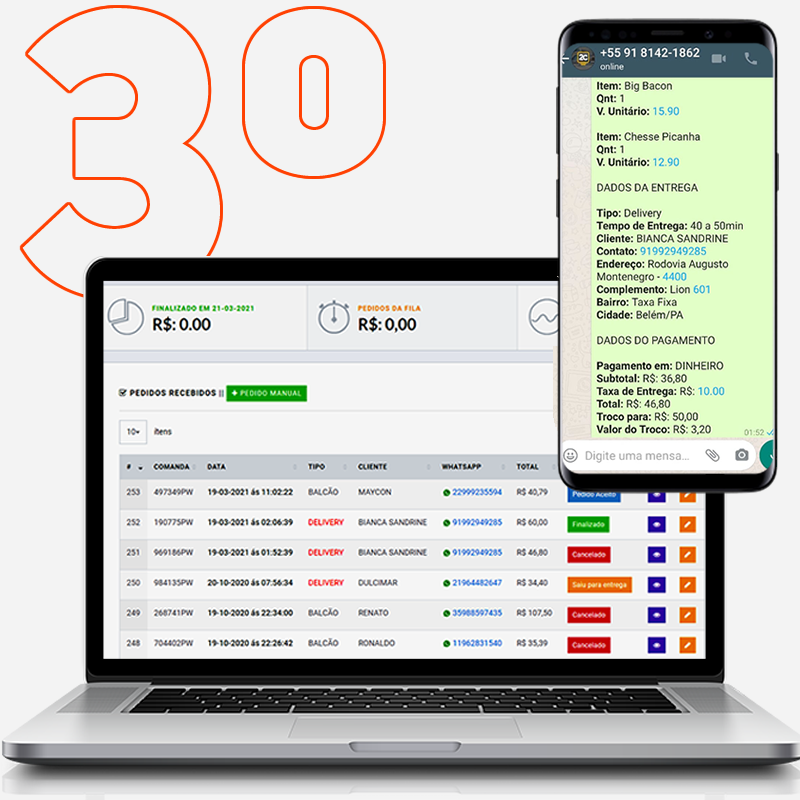 Quando alguém fizer o pedido no seu cardápio, ele será enviado diretamente no WhatsApp cadastrado para receber os pedidos ou no seu painel administrativo.